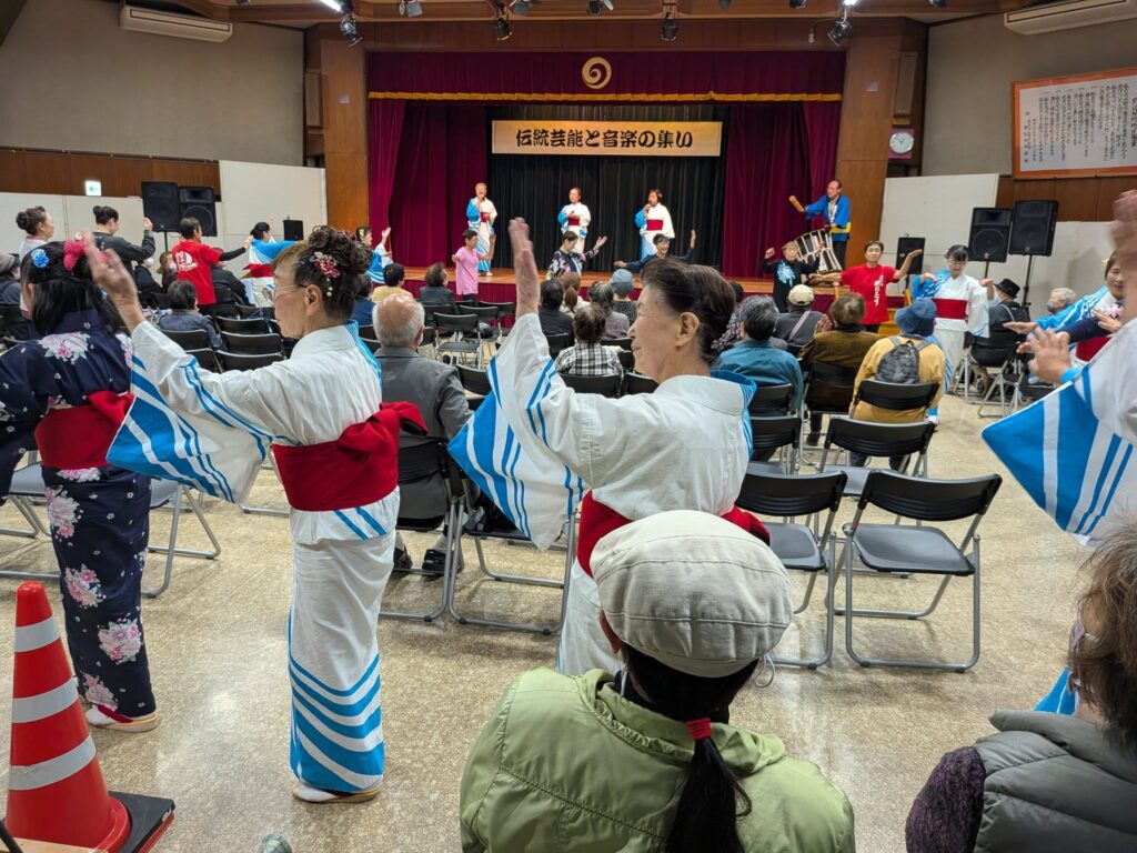 10月25日野辺地町中央公民館で、伝統芸能の沖揚げ音頭や笹踊り、公民館教室のサークル活動発表「伝統芸能と音楽の集い」(12団体)の発表がありました。