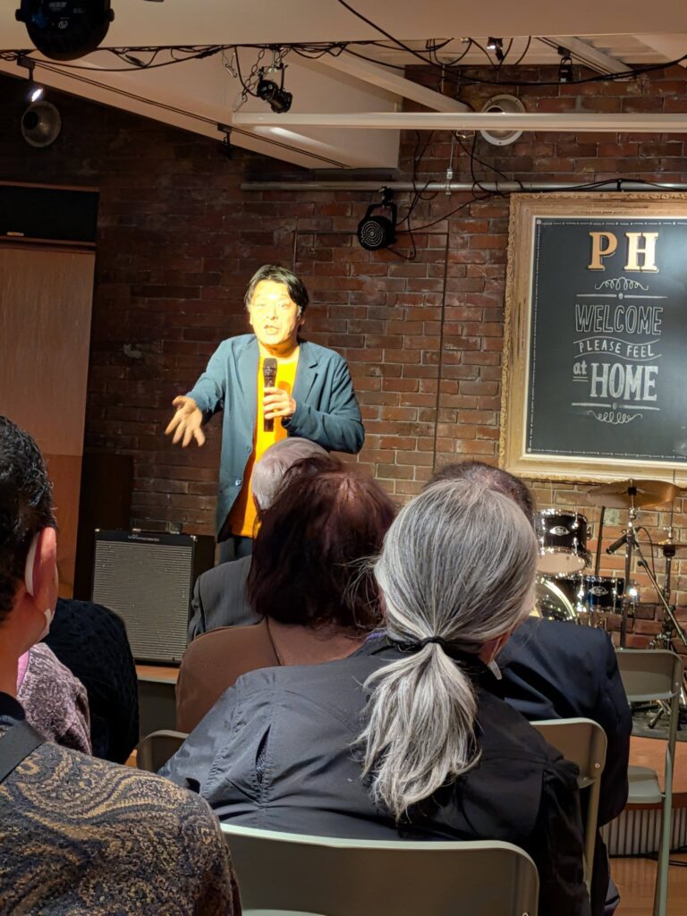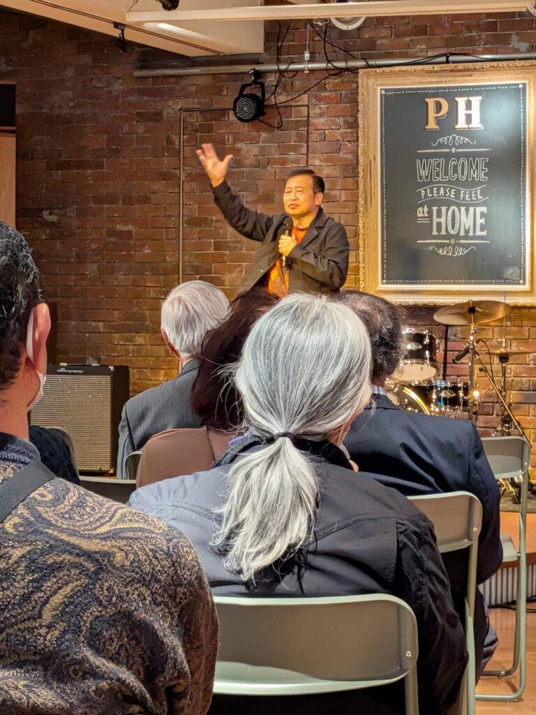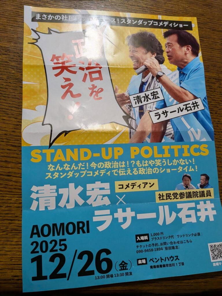 12月26日青森市古川のペントハウス。ラサール石井社民党副党首が青森に。全国行脚の5カ所目でこのあとも各地を回るそうだ。