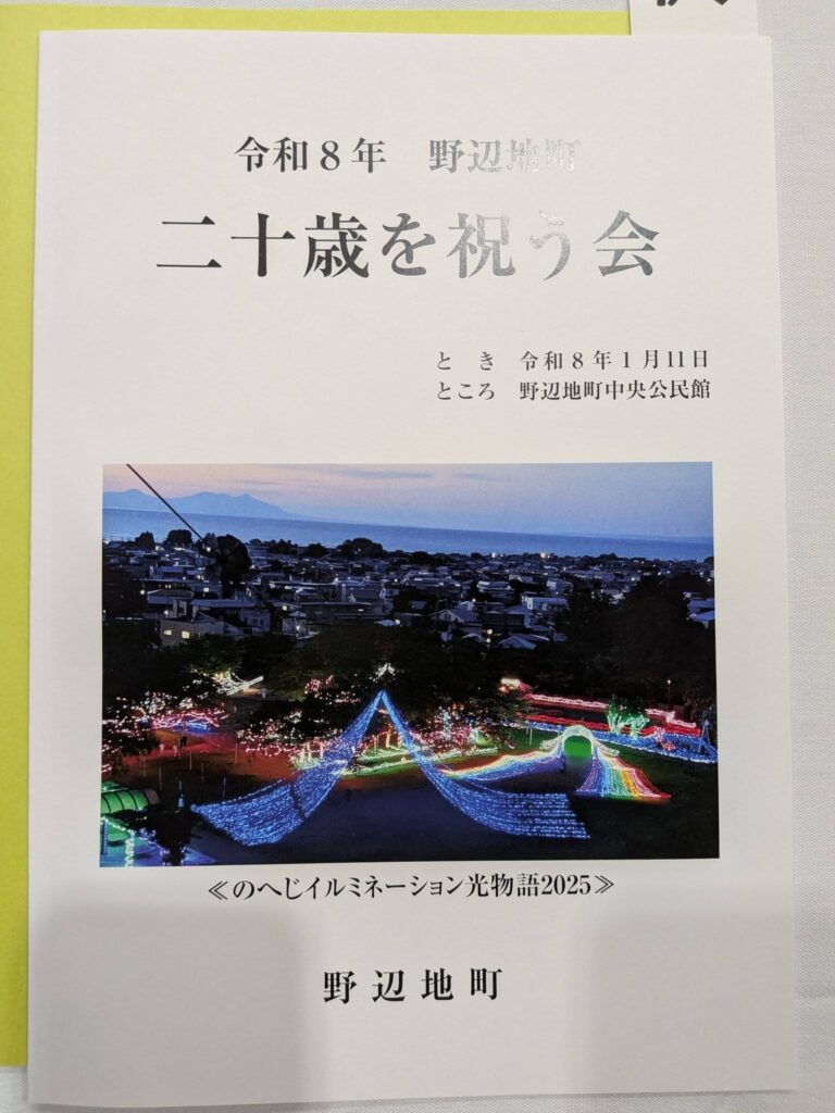 5日には町主催で新年祝賀会。賀詞交歓会ですそして今日は、町主催で成人した若人の二十歳を祝う会。